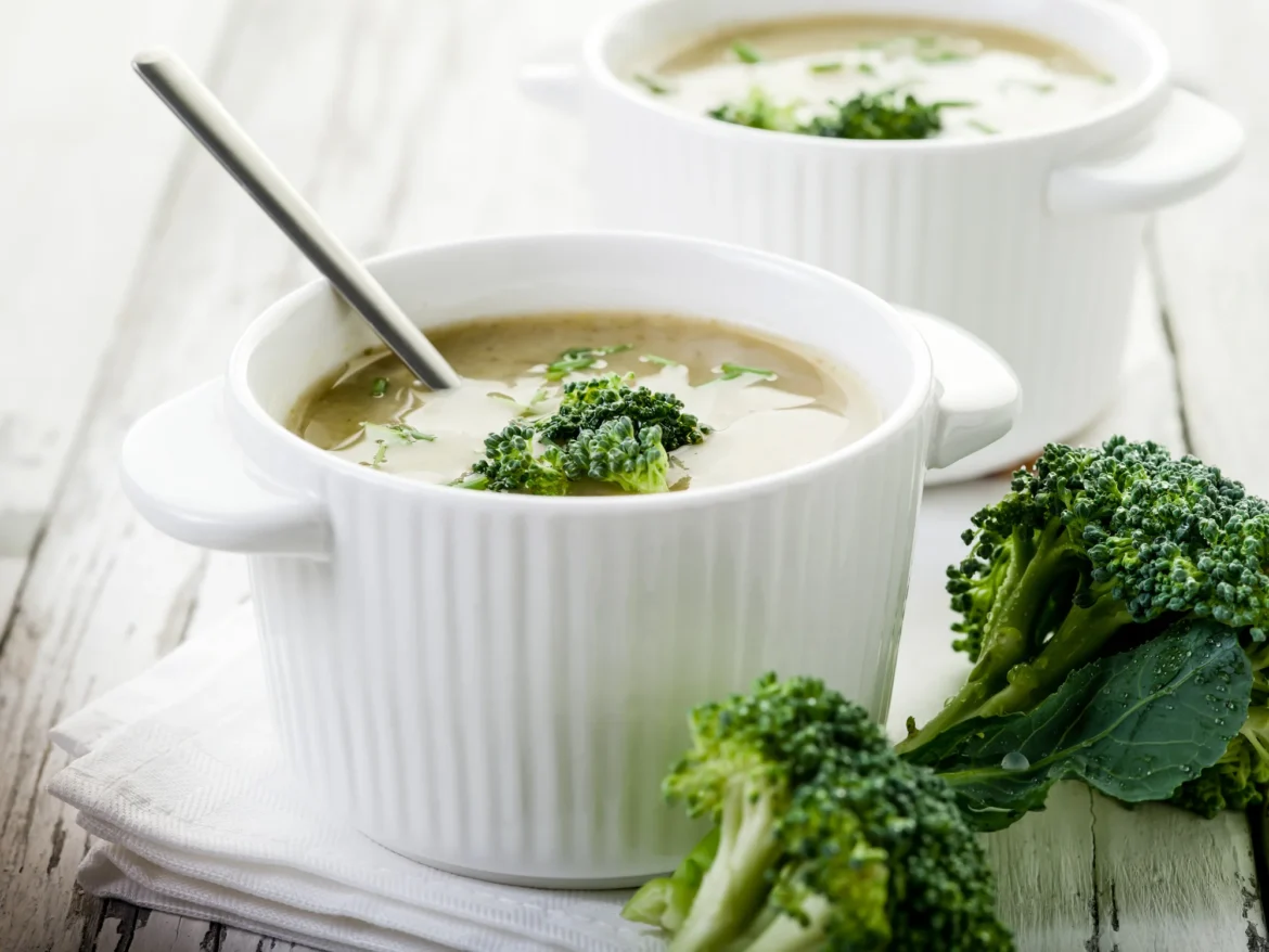 - Pour the soup into the bowl and garnish with some florets of broccoli.