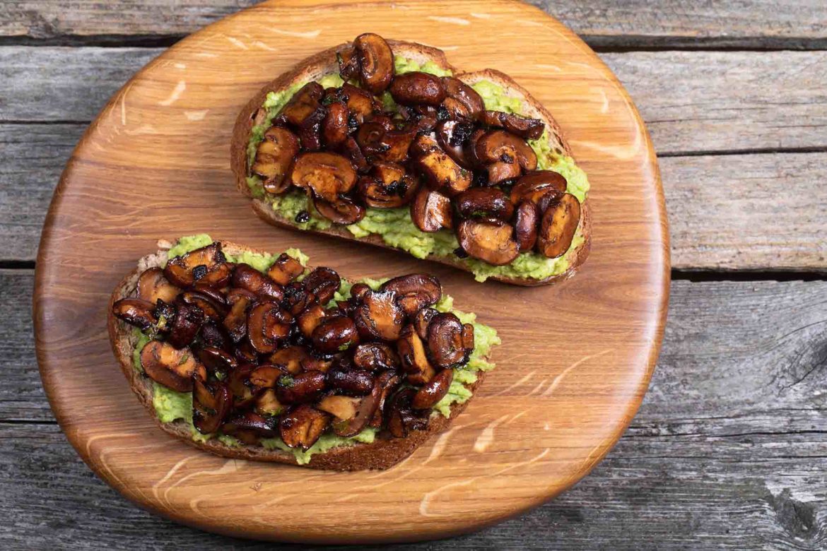 7. To prepare the avocado simply mash it down with a fork and add the lemon juice and salt. Toast the bread and spread a thick layer of the avocado on top and mushrooms.